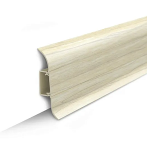 Высота плашек – 55мм. Она позволяет заводить под плинтус стеновые панели и полностью закрывать технические зазоры между стеной и покрытием пола. Можно не выравнивать стены и пол в месте их стыка.